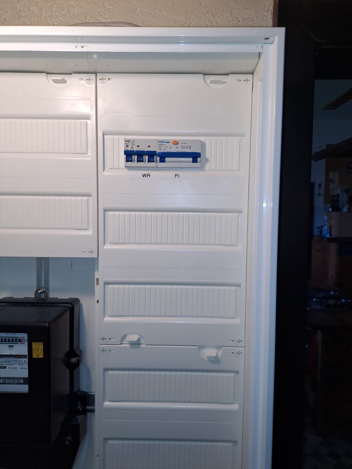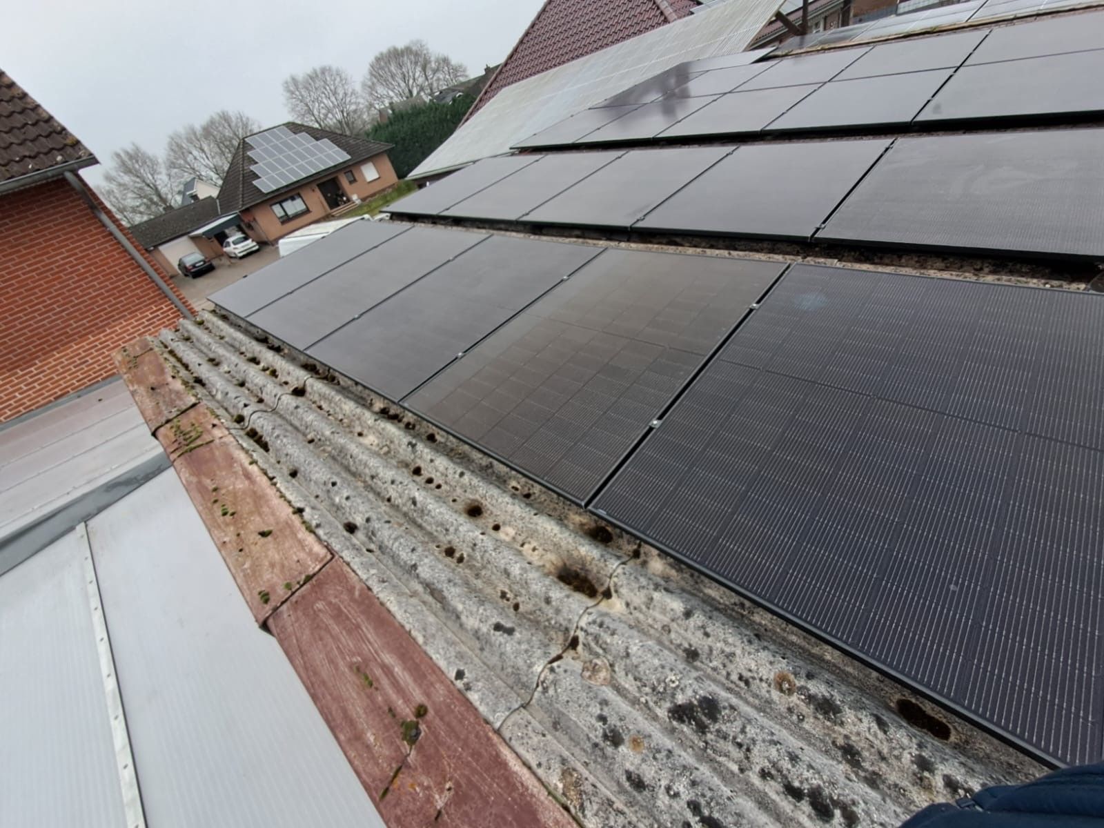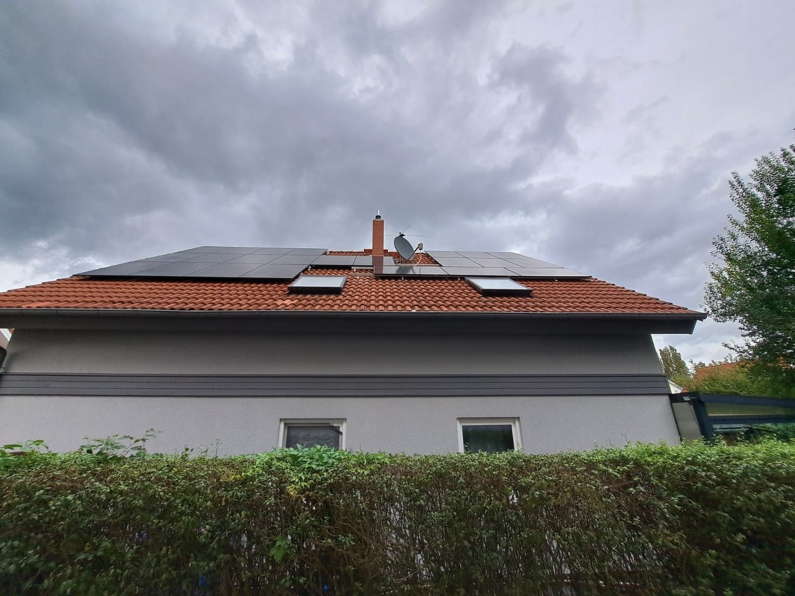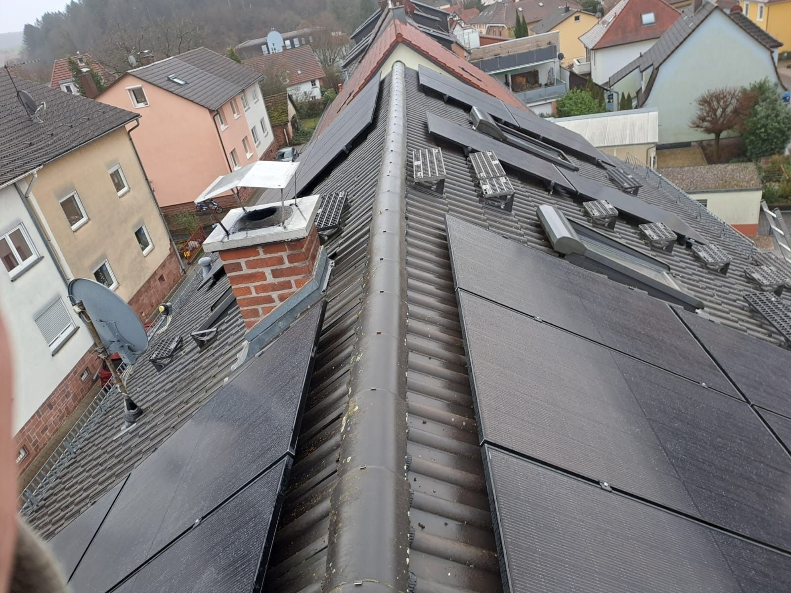 Vielen Dank für die schnelle Lieferung. Die Anlage läuft einwandfrei, nur der Batteriespeicher muss noch angeschlossen werden, vorab schon mal ein paar Fotos, Foto mit Süd-Ost-Ausrichtung (26 Module), Foto mit den anderen 8 Module auf der Nord-Westseite, 1 Foto mit Überspannungsschutz und Wechselrichter.