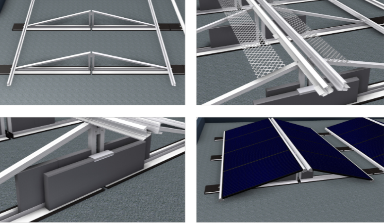 Dieses Montageset bietet eine zuverlässige Lösung für die Installation von Solarmodulen auf Flachdächern, um die Energieerzeugung in verschiedenen Umgebungen zu maximieren.