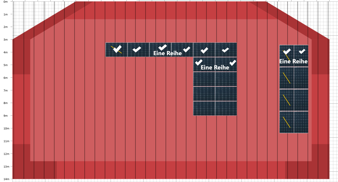 Bei einem Pfannendachsystem können Sie bis zu 12 Reihen vertikal oder horizontal erweitern. Dabei haben Sie für jede Reihe die Auswahl aus den Optionen 2, 4, 6, 8, 10, 12, 14, 16, 18 oder 20 Solarmodulen. Es ist möglich, das System mit 1, 3, 5, 7, 9, 11, 13 oder 15 Solarmodulen zu nutzen. Die Anpassung der Schienen erfordert nur einen geringen Aufwand von Ihnen. Während des Bestellprozesses können Sie von uns zusätzliches Montagematerial für Ihre